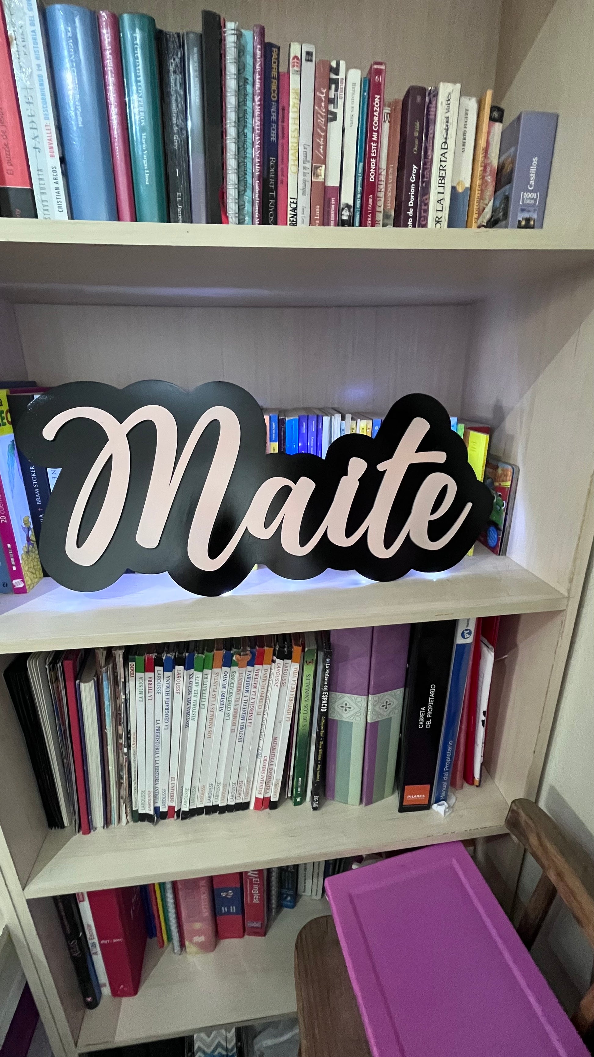 Cuadro con nombre En MDF Personalizado Con Iluminación LED Decorativa